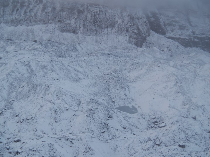 Snow from a recent avalanche which started high above on Hiunchuli.
