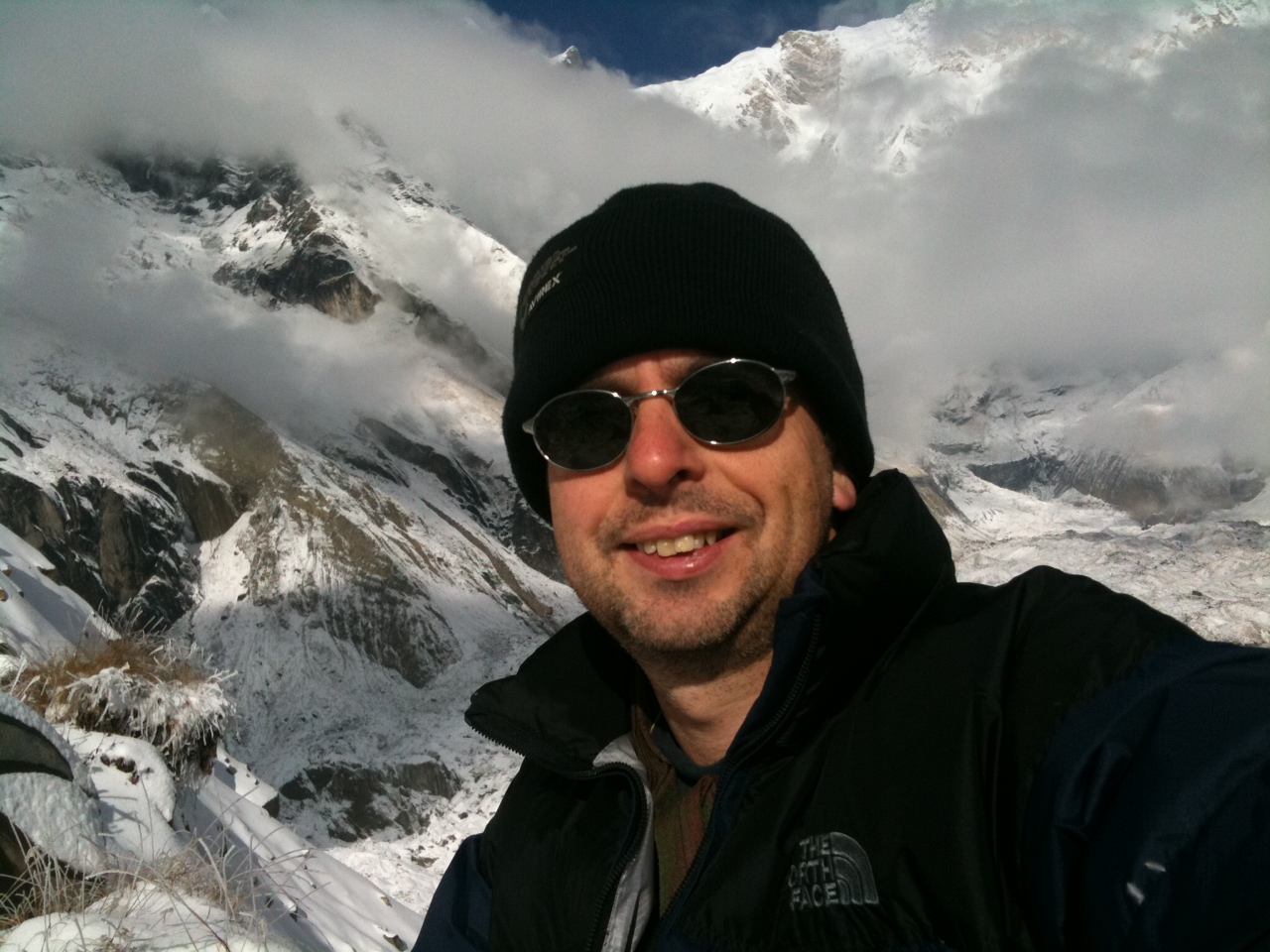 Peter from Austria, who was a day ahead of us, walks down from seeing a fantastic sunrise at Annapurna Base Camp.