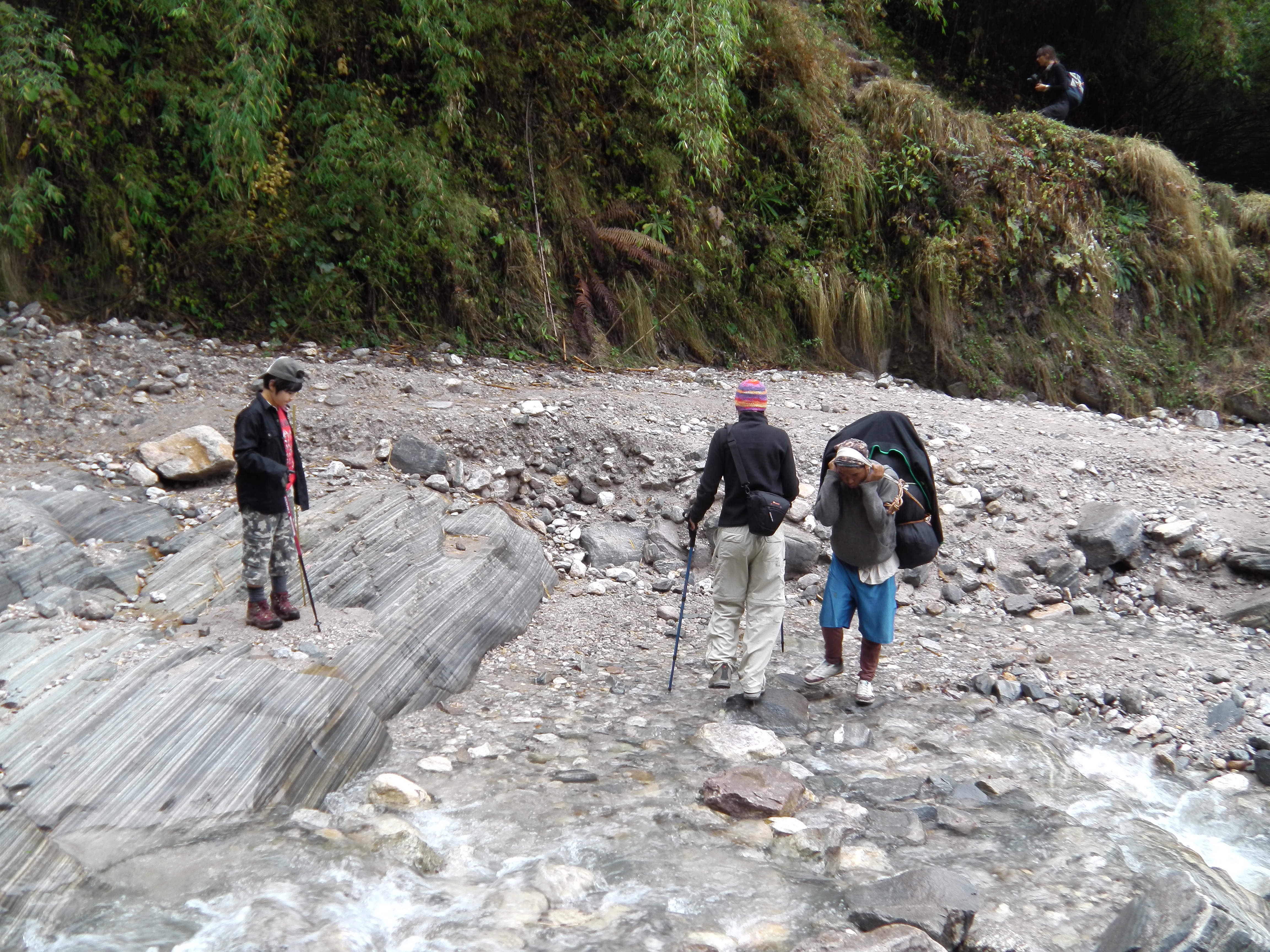 The Modi Khola river, which we have been following for 9 days., is little more than a stream at this altitude and the valley is quite narrow.